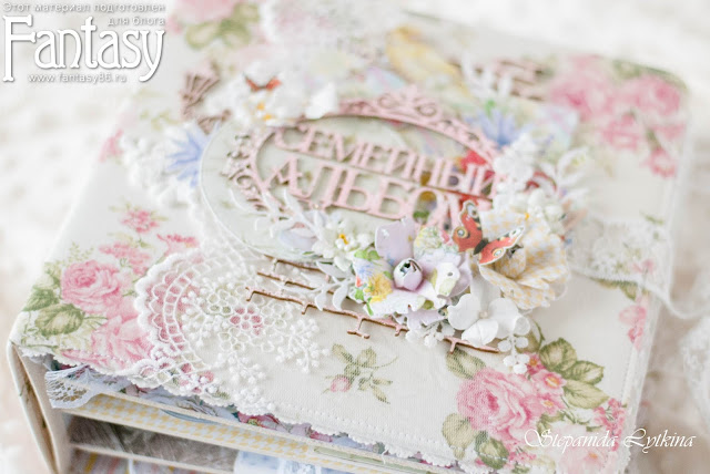 Сегодня я, Степанида, покажу вам Семейный альбом. Размер альбома 21х21 см, обложку обтянула хлопковой тканью и украсила кружевом, чипбордом, высечками и цветами. Альбом получился на 4 разворота, которые вмещают до 50 фотографий размером 9х13 см. Я очень люблю создавать альбомы, получаю огромное удовольствие не только от результата, но и от самого процесса.